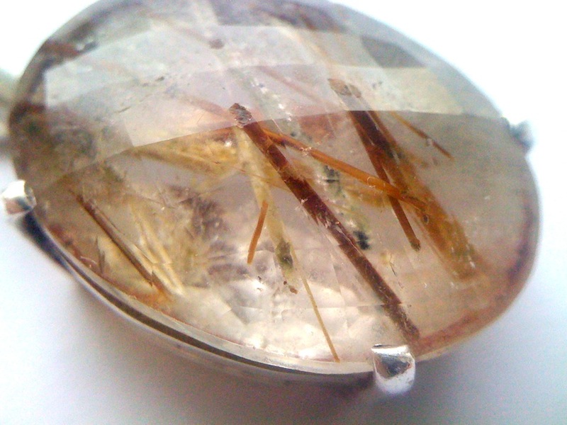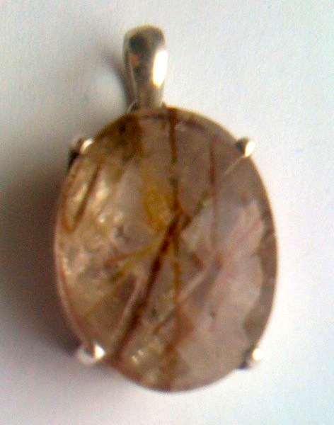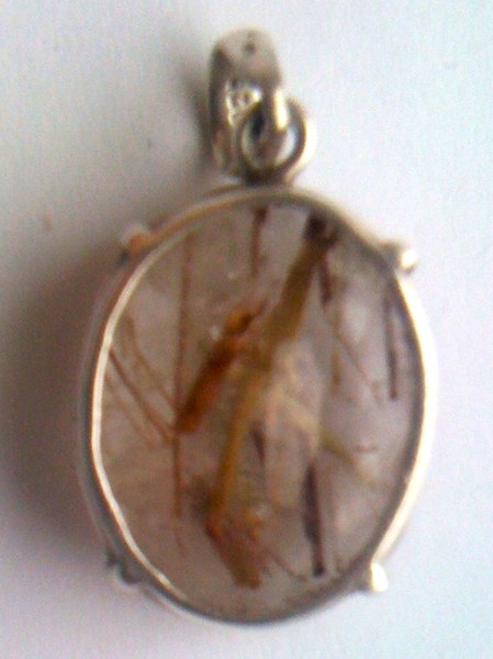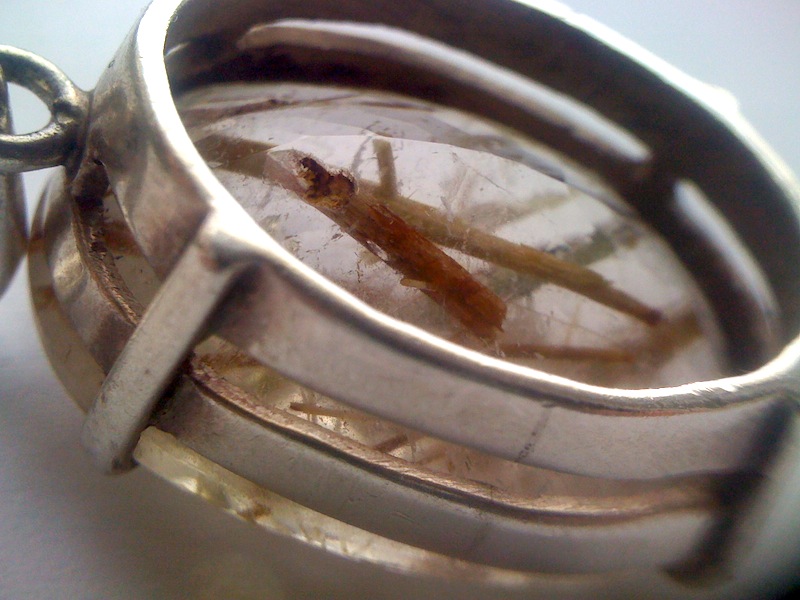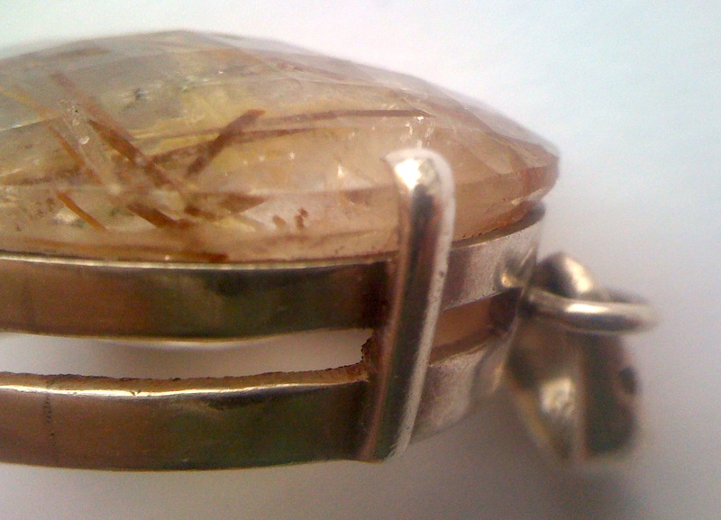 Ag přívěšek druz – Stříbro Ag 925 celková váha 12,2g Kámen 26*21mm v.12mm Celkový rozměr: 40*21mm Kámen Sagenit (křemen s vrostlicema rutilu) Naleziště: Madfagaskar, Brazílie. Tento kamen je velice krásně patrné vrostliny na hranách brusu. Z plošek vystupují ven. Jakoby tráva zalitá do vodního skla. Přívěsek je velice zajímavý, kámen zasazený do stříbra,