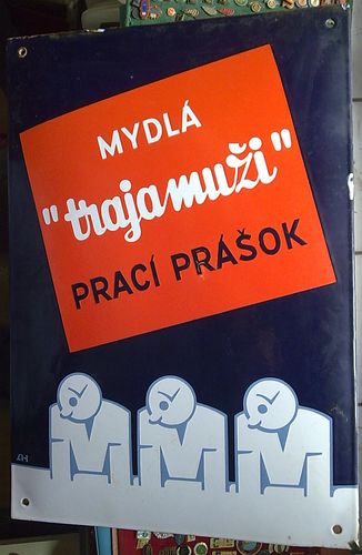 Reklamní smaltovaná ceduleMydláTraja mužiPrací prášok33*48cm