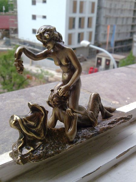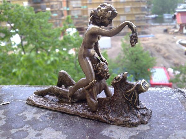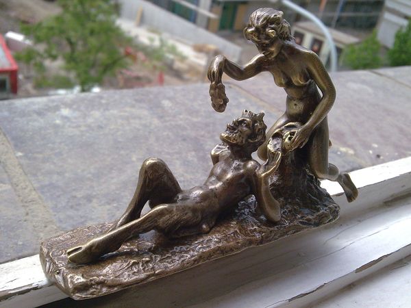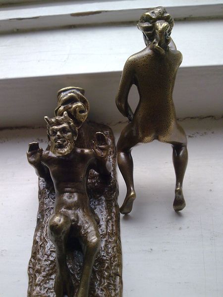 Erotika Sousoší Čert a dáma s hroznemVariabilní, plastické, MOSAZ