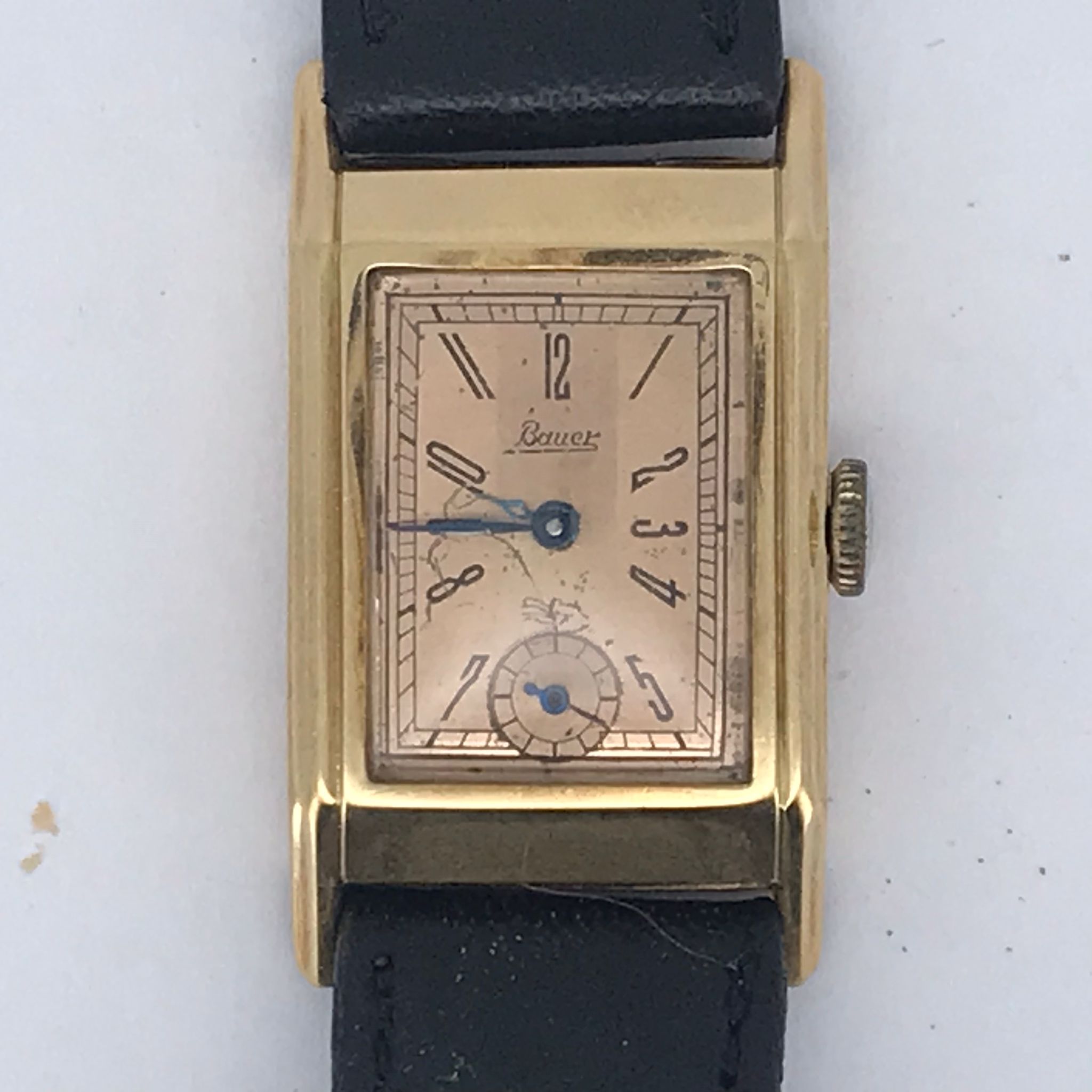 Zlaté náramkové hodinky – HodAu1502 – BAUER – hranaté