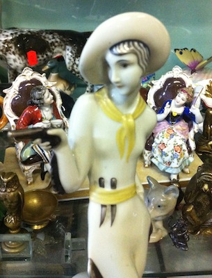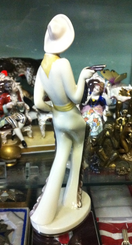 Porcelánová soška dívky v kovbojském šatu. Vyjmečná soška, unikátní pojetím, taková nebyla v posledních letech v nabídce nikde. Pozdní Art Deco – Funkcionalismus