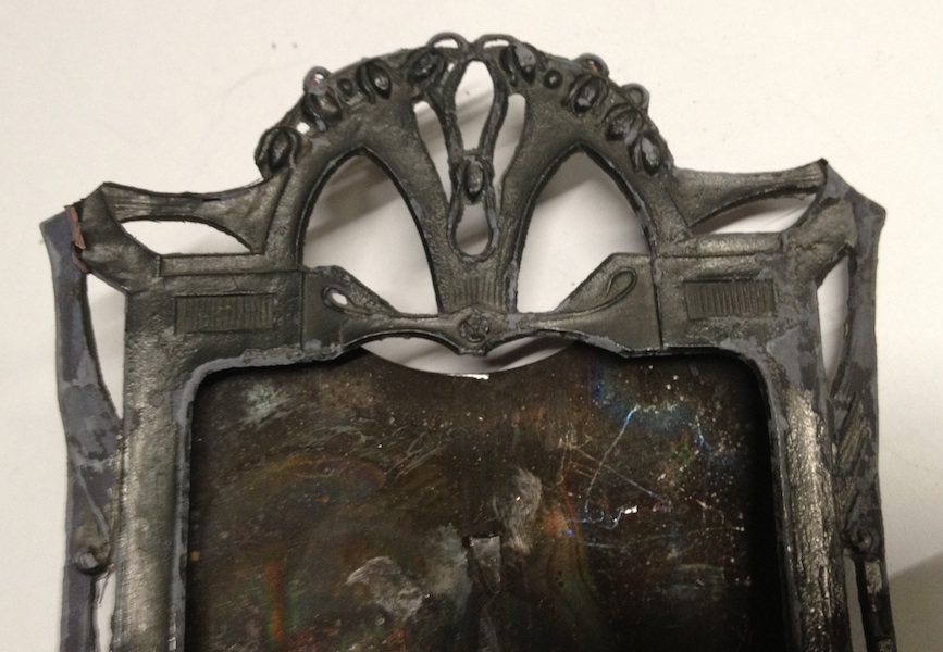 Tento starožitný foto rámeček má i původní skla na fotografii.
