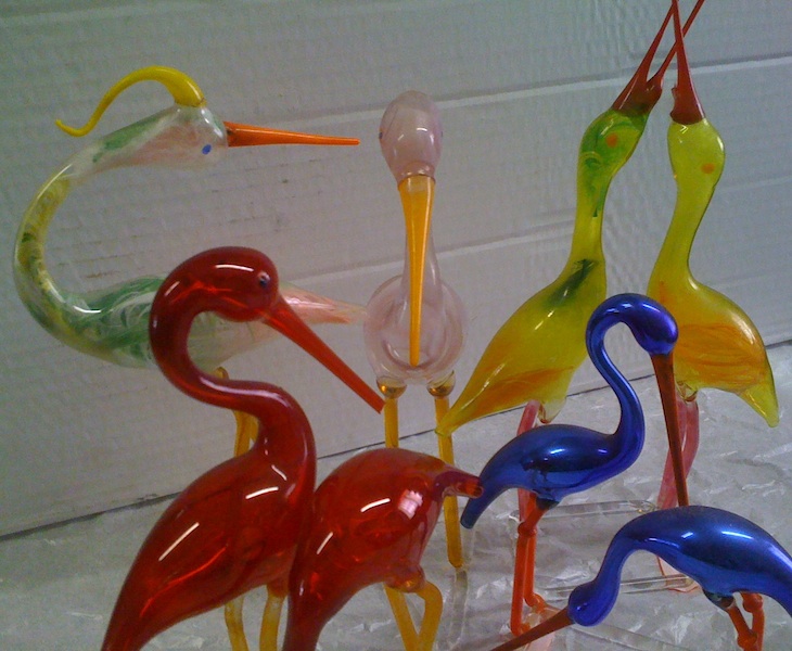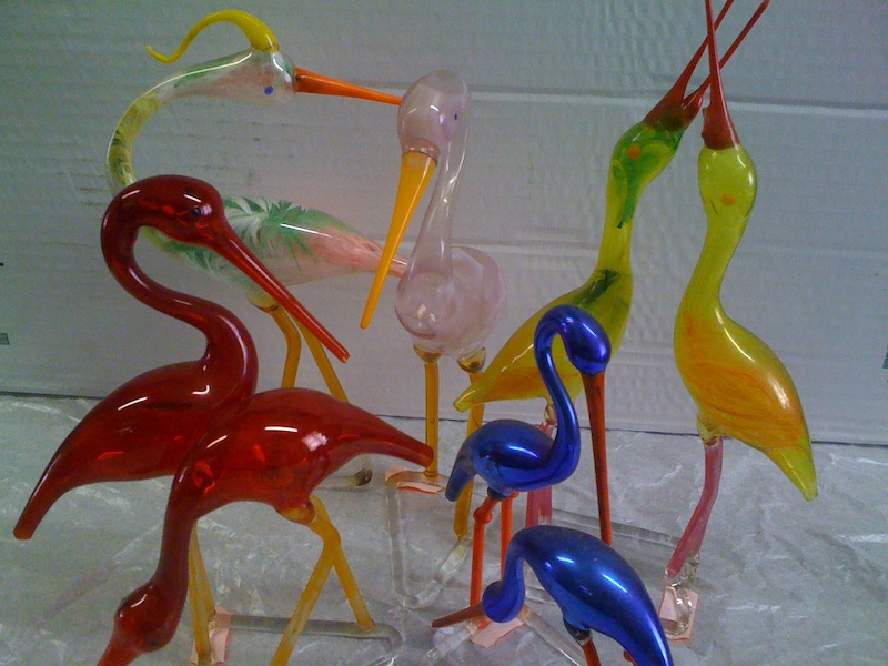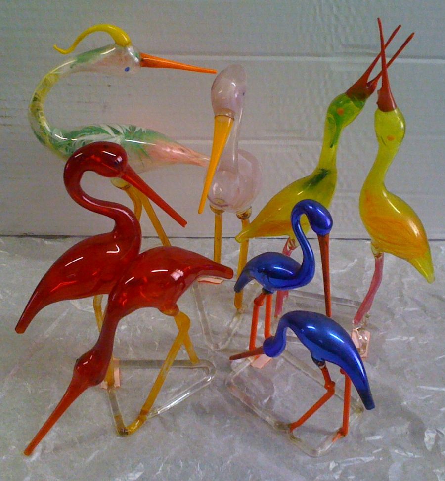 Sklo Sochy soška Čáp Čápi foukané Sada A – 1ks = 1200.-Kč