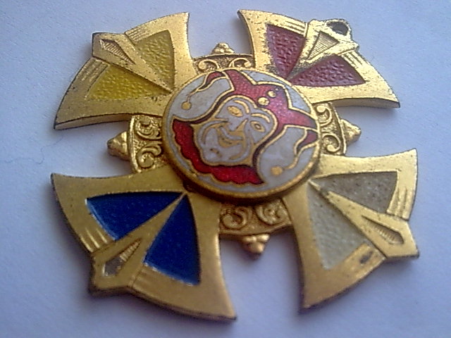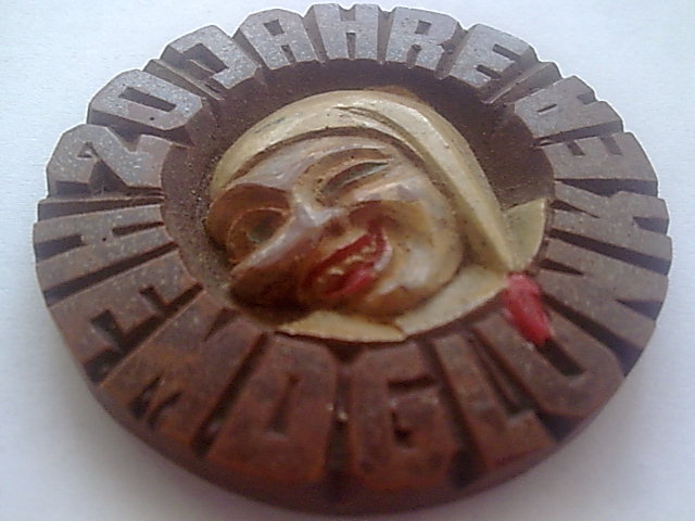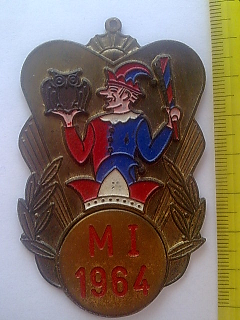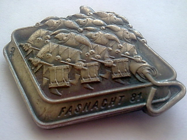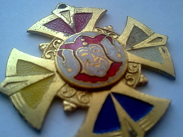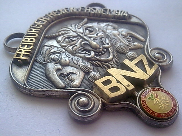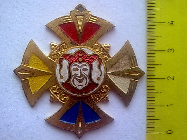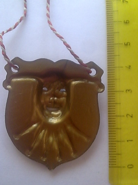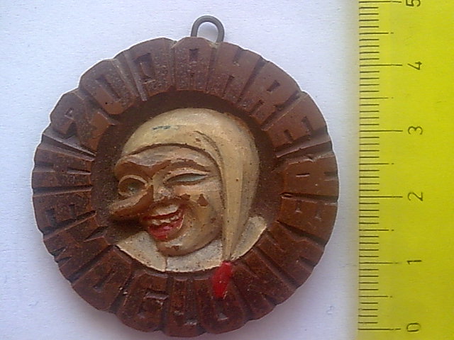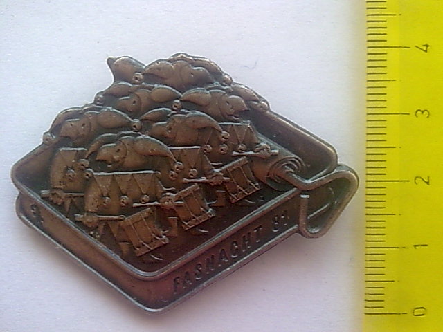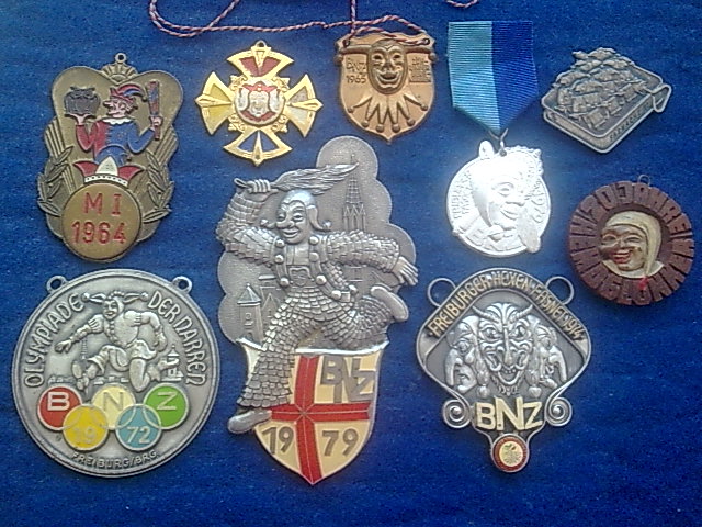 Šlarafie sbírka 9ksRůzné stáří, rozměry a materiál.Celkem 9 ks většinou kovové, velice plastické. Ta kulatá vypadající jako dřevo je z nějakého hnědého plastu.Různé druhy a to šlarafie, turnfesty, faschingové či karnevalové.
