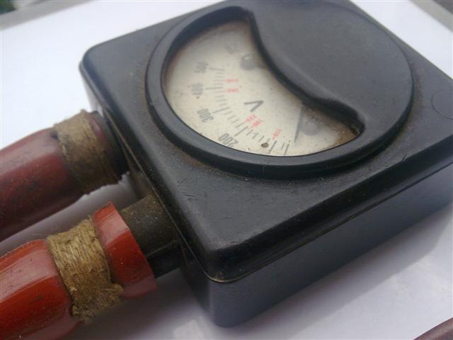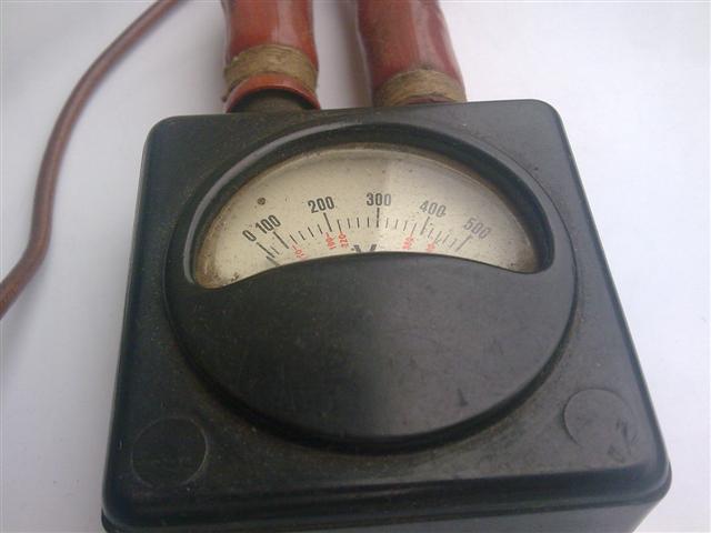 Voltmetr Bakelitový starožitný,také koncovky původní. Rozsah stupnice: 0 – 500 V Rozměr:krabička 7*7cmtloušťka 3cmkabely 45cm