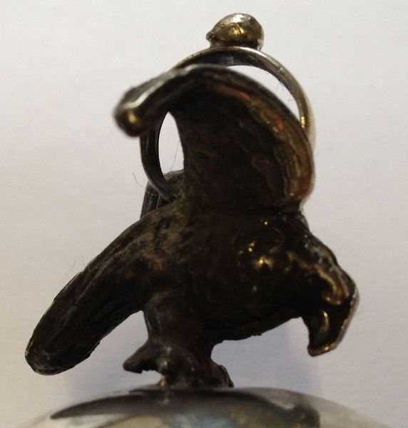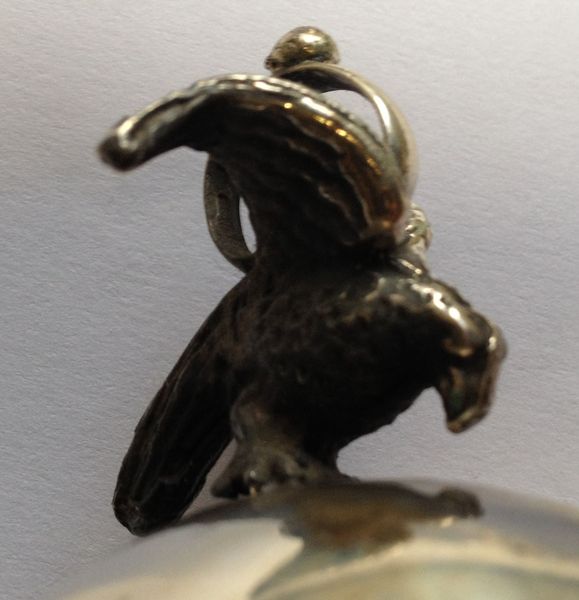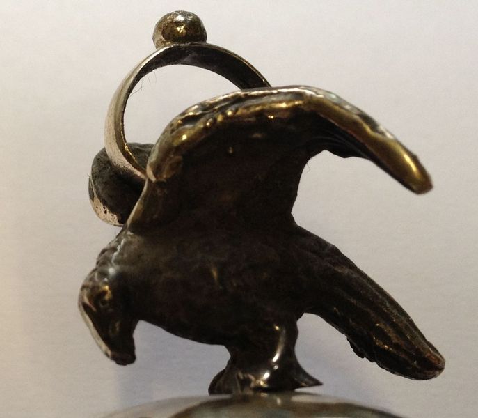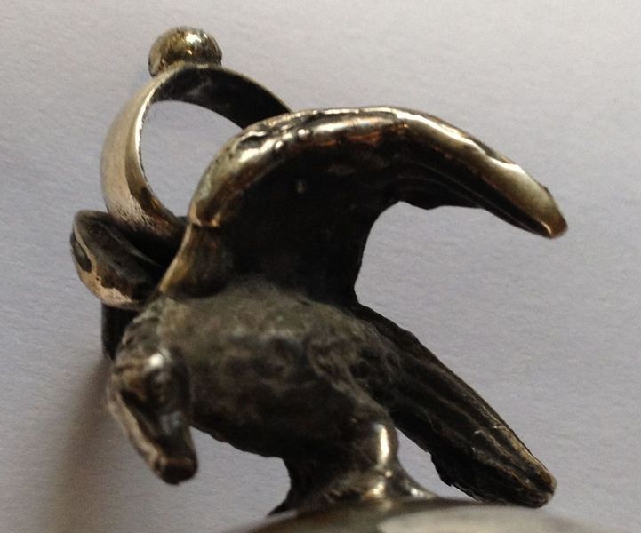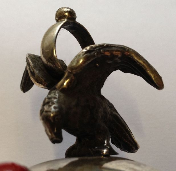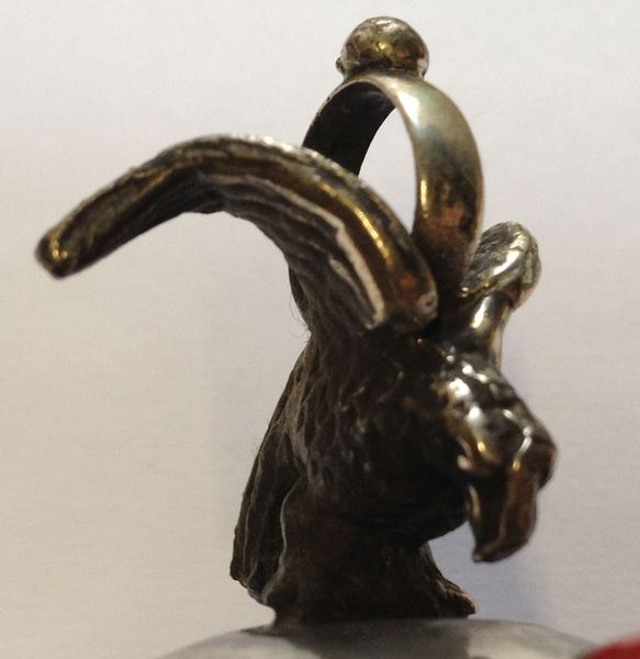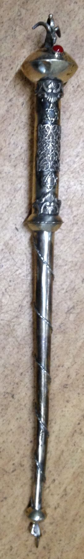 Obrovské dlouhé židovské ukazovátko pointer JAD – hlavice koruna PTÁK Velmi velké, obrovksé ukazovátkodlouhé 46cm Stříbro 84 ruský punc 1786 Velké, dlouhé židovské ukazovátko na čtení z posvatného Písma z Tóry. Hlavice, horní část ukazovátka má vsazený červený kámen a ptáka v letu se závěsným očkem na řetěz. Provedení ve stříbře s množstvím