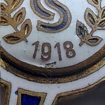 První verze s největší pravděpodobností měla zapínání, zavěšování na podélnou spínací jehlu, která byla na ráhnu a z přední strany měla zakončené polokoule. Další vydání již bylo jen s tenkrát obvyklou jehlou z drátu tvarovanou do T, se zapichívání zhora dolu. Později se zase objevuje ráhno.