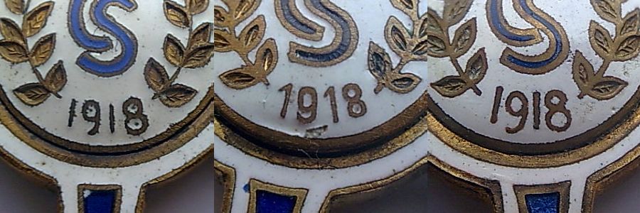 Teprve až při porovnávání více kusů je možné si všimnou rozdílnosti fotů číslic, kdy nejmarkantnější je to u číslice 9 v letopočtu 1918.