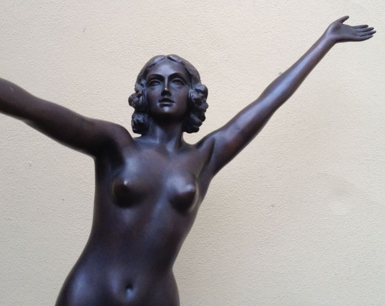 Jelizaveta Nikolská de Boulkin. Velice povedená soška tanečnice, nahá postava dívky, erotická poza Jelizavety Nikolské